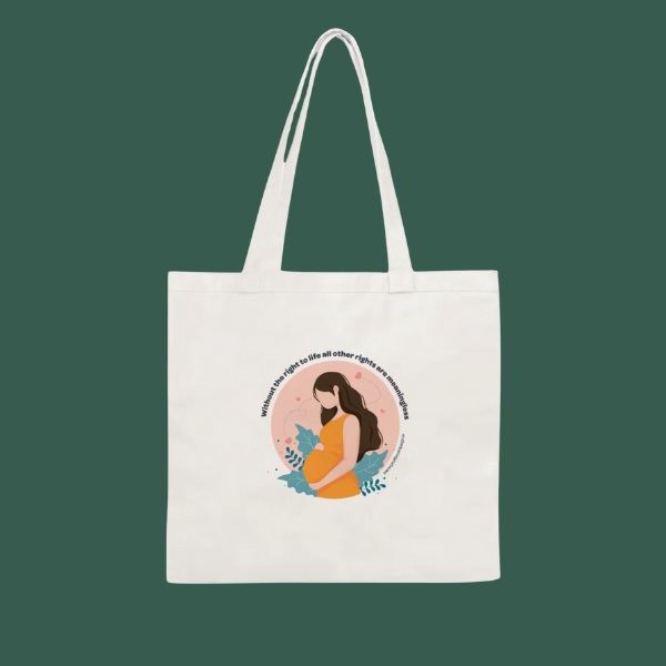 This durable canvas bag celebrates motherhood with a heartwarming design.